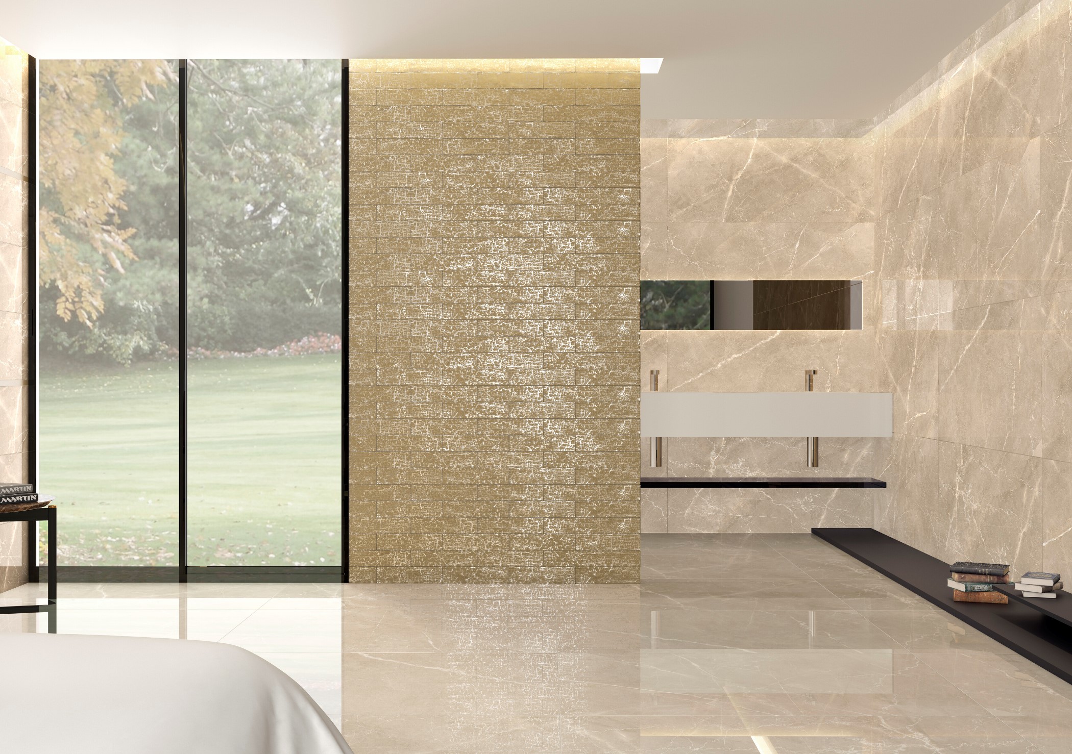 dlažby v imitaci mramoru – představují dokonalé řešení pro obývací pokoj v luxusním stylu. Imitují mramory, které se běžně těží v přírodě, ale také mramory, které se již v přírodě netěží a nabízejí tak luxus za dostupné ceny. Trendy jsou také fantazijní imitace mramorů, jejichž podoba je pouze inspirována přírodou.