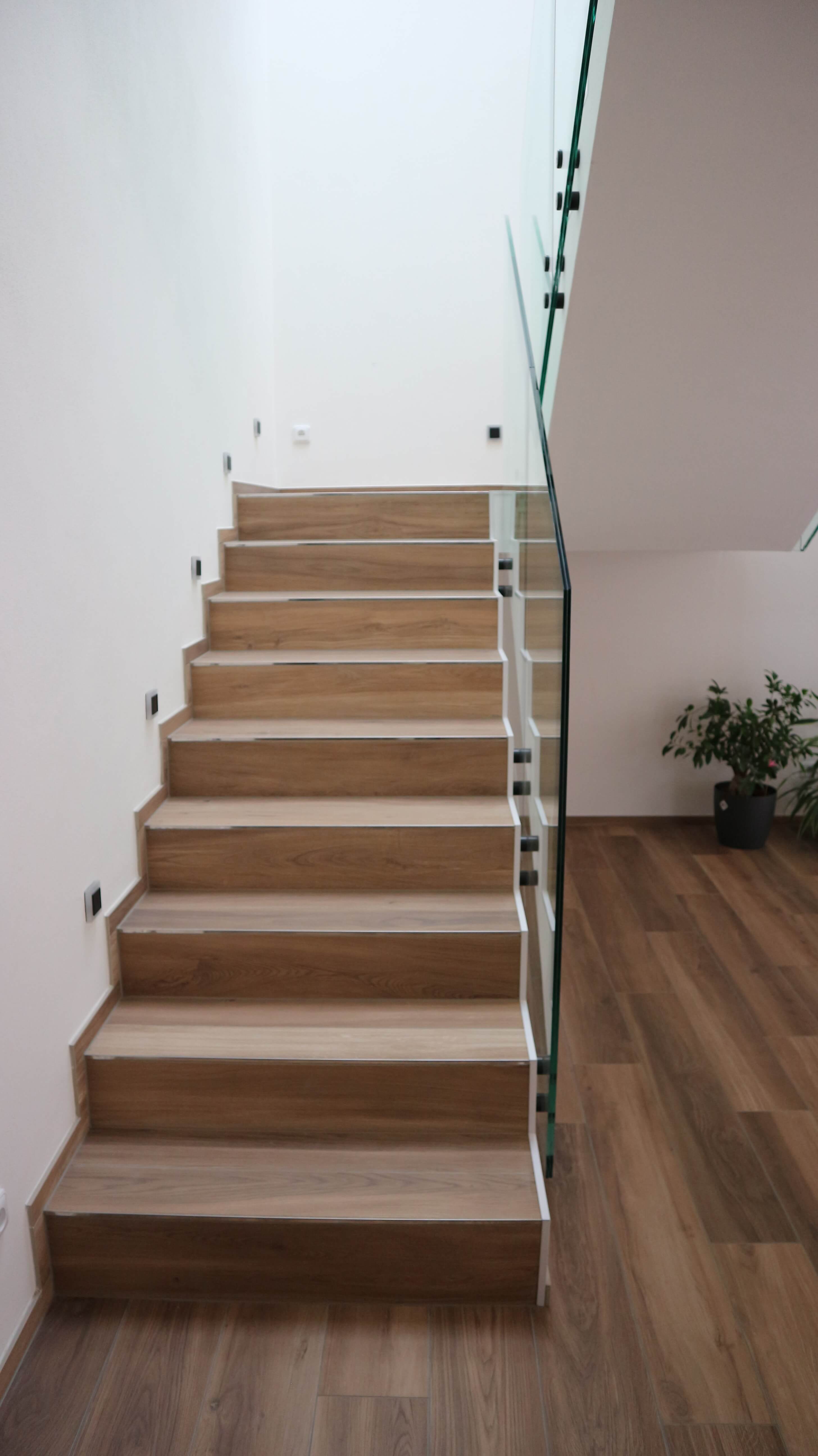 Dlažba na schody musí být odolná proti otěru. Zákazník má na schodech dlažbu v imitaci dřeva Travel, ke které se dají pořídit i schodovky a jiné schodové prvky.