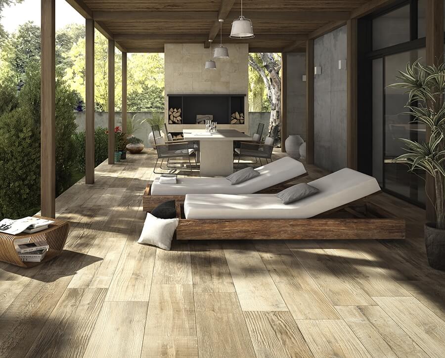 Dlažba v imitaci dřeva Cross Wood je mrazuvzdorná a dá se položit do interiéru i exteriéru.