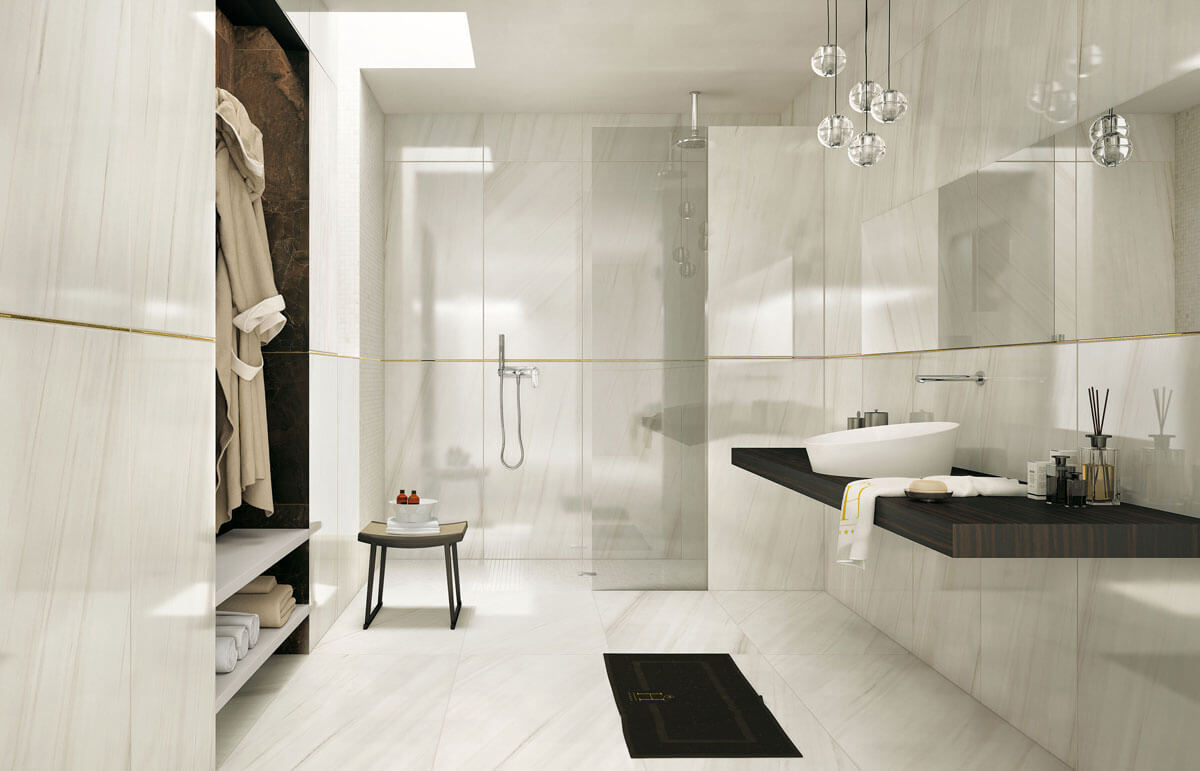 A které typy mramorů můžeme na velkoformátových keramických dlaždicích najít? „Trh aktuálně žádá především keramické desky bílých mramorů typu CARRARA a CALLACATTA, které se v přírodě nacházejí v Toskánsku. Děláme také jiné typy mramorů - například černý mramor z Varenny, mramor z Ligurie nebo bílý mramor LASA, který pochází z Trentina. A také jiné grafiky mramorů, které se těží na různých místech světa,“ vysvětluje Luciano Capelli.