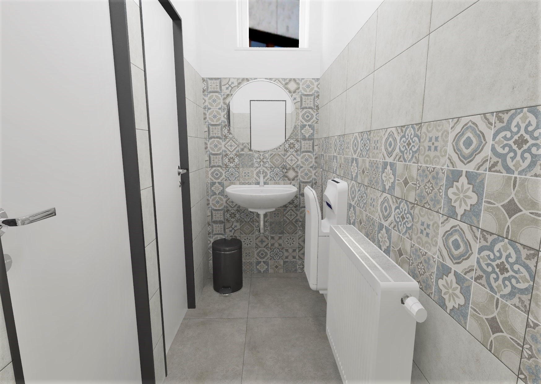 Obklad v imitaci cementové stěrky, která je určena pro vytvoření nadčasového bydlení. K dlažbě imitující beton lze pořídit dekorativní obklady – v minimalistickém či patchwork stylu, které umožňují vytvořit interiér mnoha tváří.